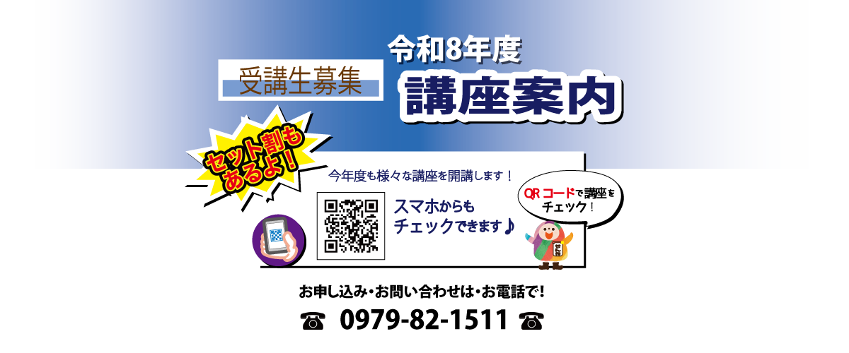 top-slide_2026no.04aaaaaaaaaatop-slide_2026no.05atop-slide_2026no.03 お知らせ 令和8年度講座公開! お得なセット割始めました! 受講料のお振込ついて Instagramはじめました! 申込受付中 R7-AI活用講座ⅳパワーポイント編[3/10(火)~3/24(火)] 日程表(計画表) 令和8年度の「技能講習・特別教育日程表」をPDFでご覧いただけます 令和8年度の「ガス溶接技能講習計画表」をPDFでご覧いただけます 令和8年度の「小型移動式クレーン運転技能講習計画表」をPDFでご覧いただけます 令和8年度の「高所作業車運転技能講習計画表」をPDFでご覧いただけます 講座一覧 フォークリフト・高所作業車・ガス・アーク溶接など 電気工事士・ケアマネ・・登録販売など AI講座・ワード及びエクセルの基礎,応用,実用・Excel VBAなど AI講座・パワーポイント 園芸・洋裁・フラワーデザイン 折紙 当センターについて… 豊前地域職業訓練センターは、主に、福岡県京築地区や大分県北部地域の中小企業等で働く方々や求職者の方々を対象に、各種技能資格の取得や受験対策、パソコン技能習得のための講座などを実施しています。 また、園芸や洋裁などの一般講座も開講しており、地域中枢の職業訓練機関として、地域経済・社会の発展に寄与しています。